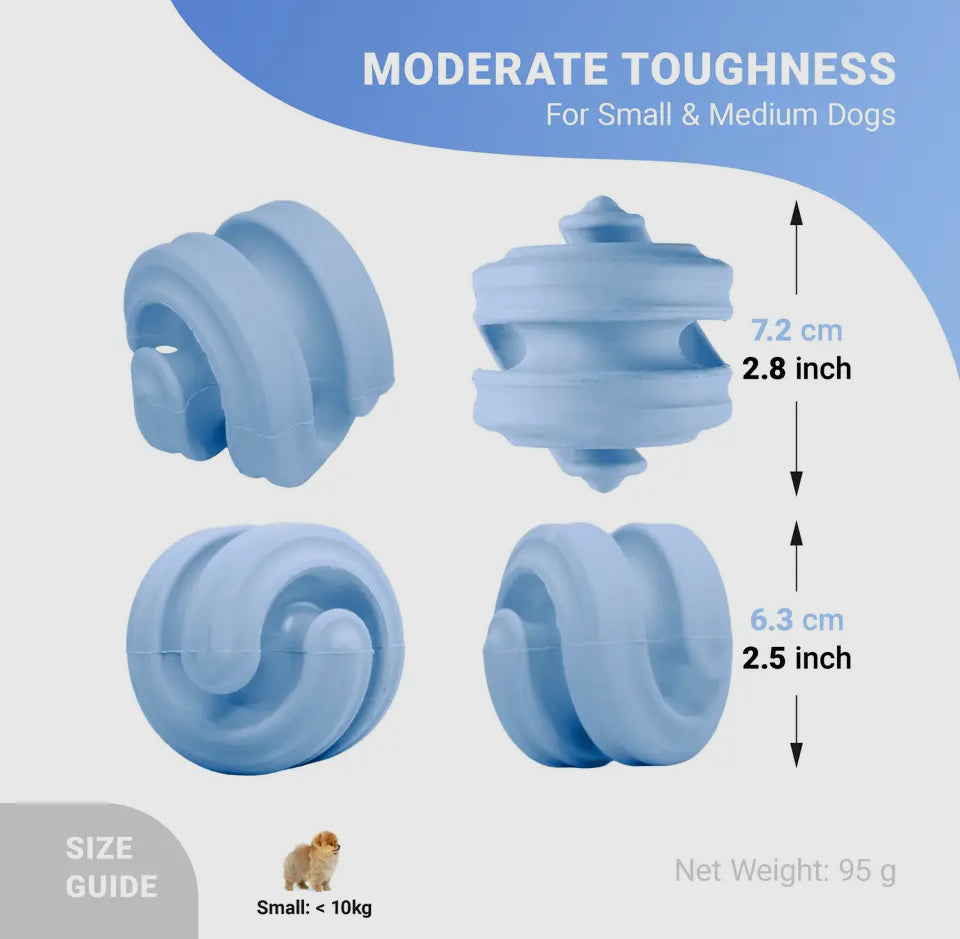 Gemaakt van premium, zacht maar duurzaam natuurlijk rubber, dat ideaal is voor gevoelige monden en tanden. Gegroefde oppervlakken stellen je in staat om snoepjes of pindakaas toe te voegen, om het extra leuk te maken voor je hond.