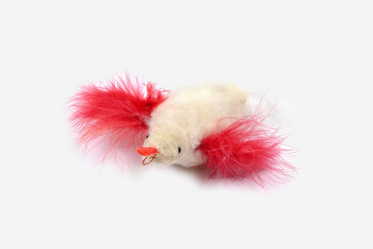 Dukkie is een superschattig eendje waarmee los of aan de hengel mee gespeeld kan worden. Het is een unieke uitvoering, met een merinowol lijfje, donzige rode vleugeltjes van maraboe veren en zijn oranje vilten bekje.