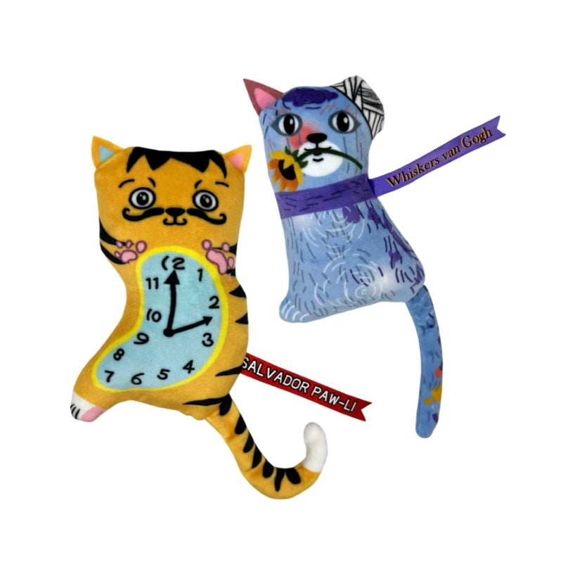 Deze kattenkruidspeeltjes in de vorm van een katje zijn gebaseerd op wereldberoemde kunstenaars.