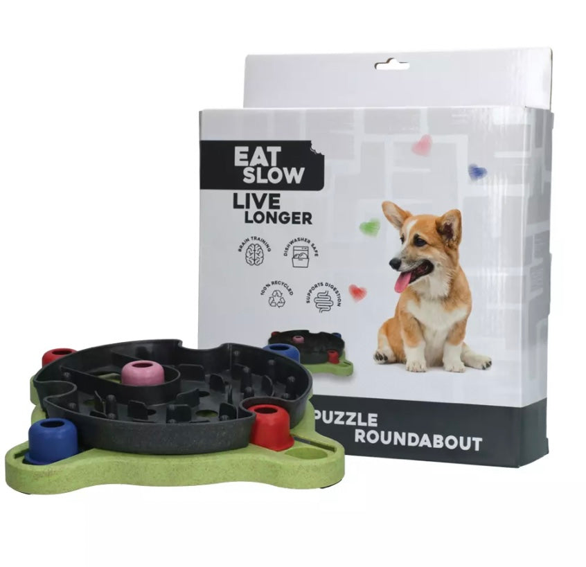 Deze Eat Slow Live Longer Puzzle is een leuke manier om honden bezig te houden en tegelijkertijd te belonen. Door brokjes of snacks in de puzzel te verstoppen, zal de hond zijn best moeten doen om alle lekkernijen te vinden door onderdelen te verschuiven, te draaien en te openen. Dit zorgt voor mentale en fysieke uitdaging en het kan bijdragen aan het verminderen van verveling, angst en destructief gedrag.