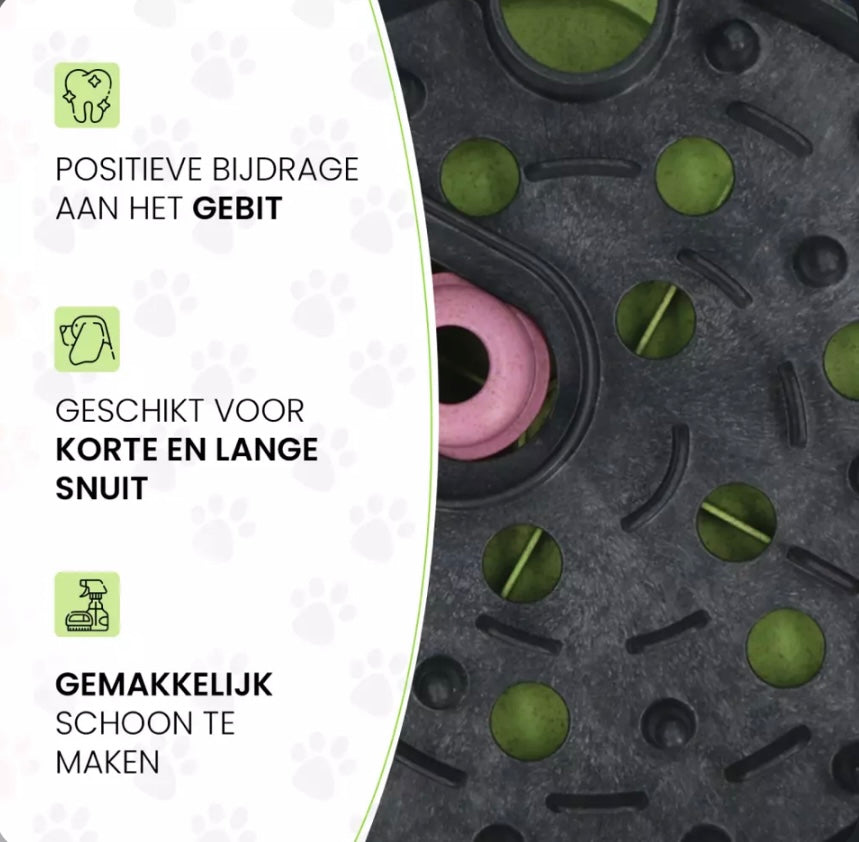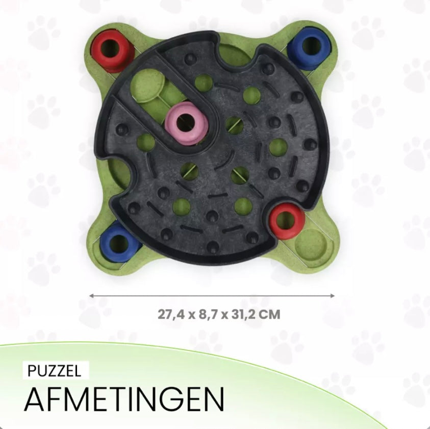 Daarnaast kan het de band tussen baasje en hond versterken wanneer ze samen met de puzzel bezig zijn. De voerpuzzel kan ook ingezet worden als anti-schrok voerbak en is voorzien van anti-slip voetjes en is vaatwasserbestendig.
