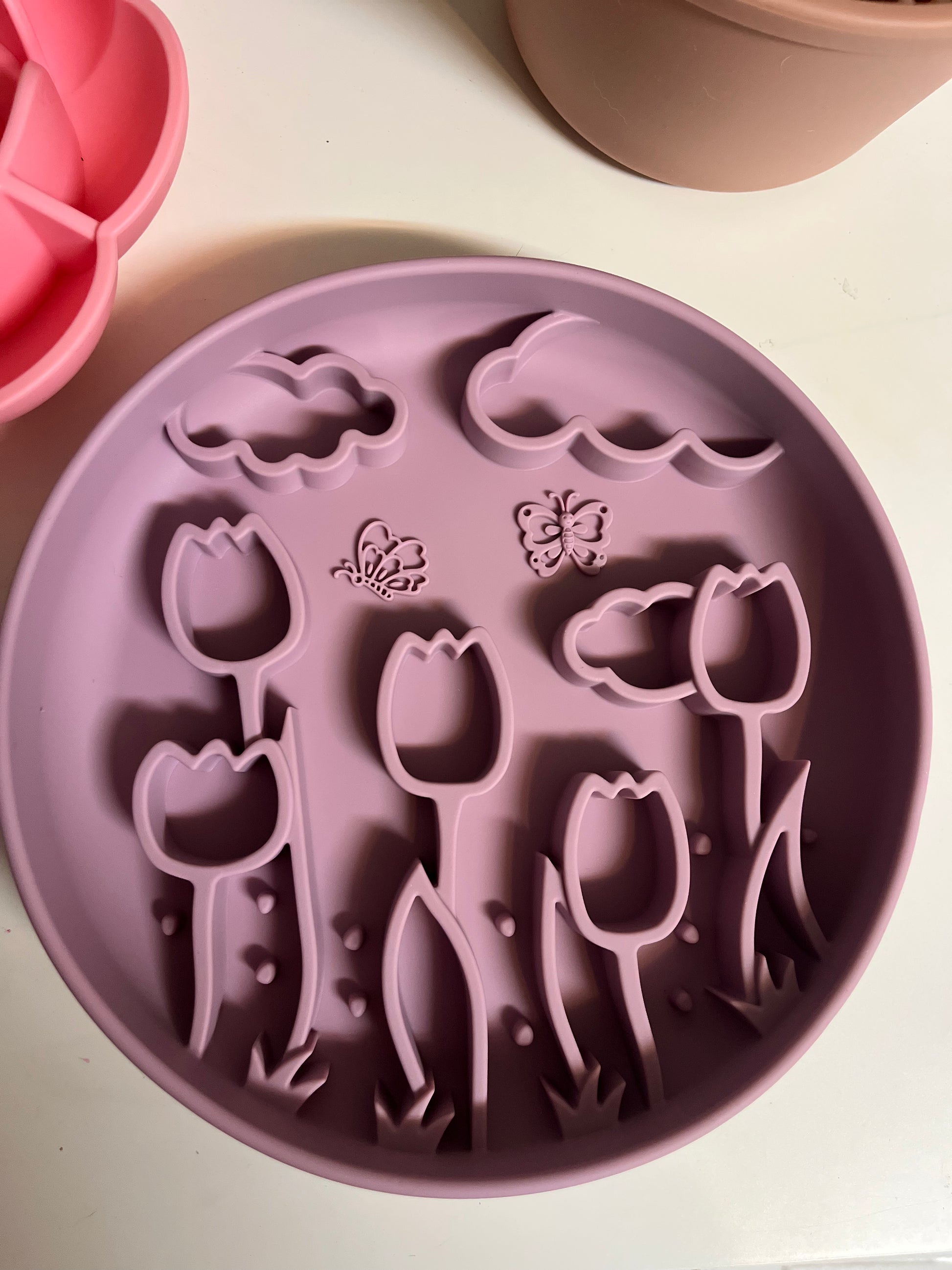 - Uniek tulpreliëf dat langzamer eten en minder schrokken tot gevolg heeft